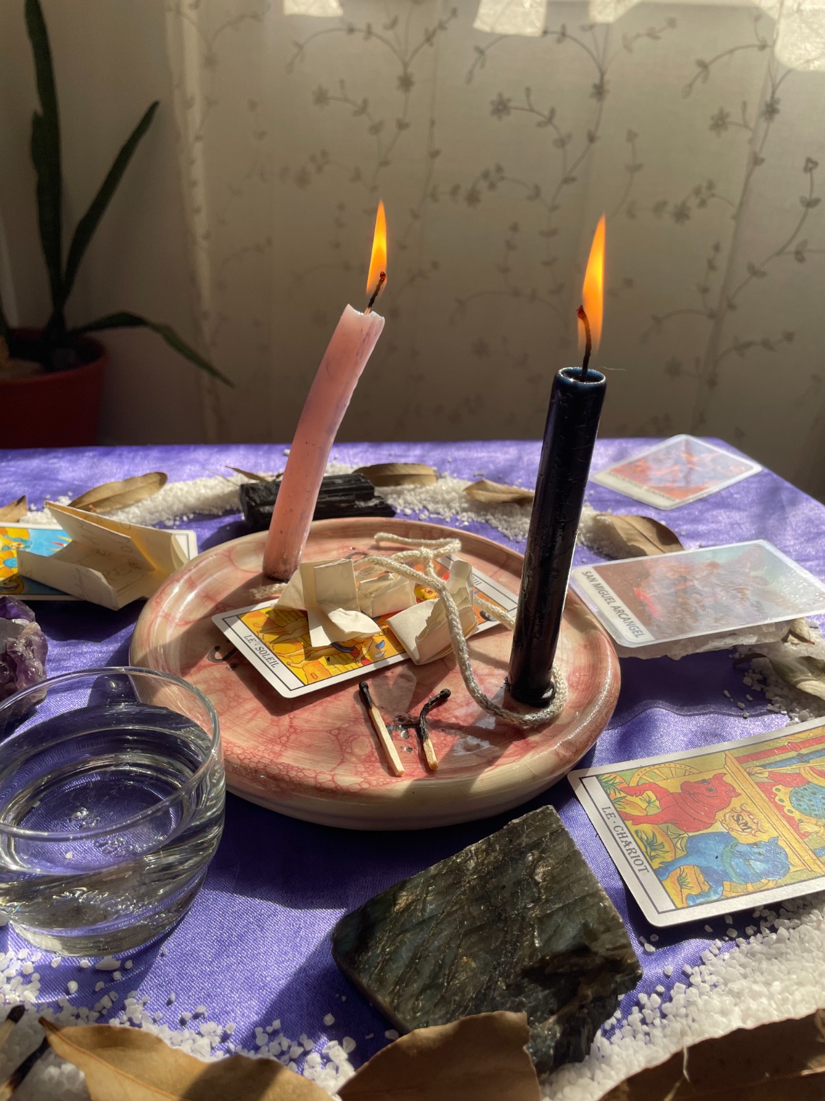 • Lectura completa de Tarot para interpretar la energía actual y definir el propósito del ritual.
